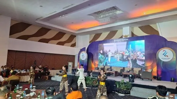 Iringan musik khas Melayu Bangka turut mengiringi penampilan para penari di hadapan para tamu undangan yang hadir dalam agenda di Santika Hotel Bangka itu.