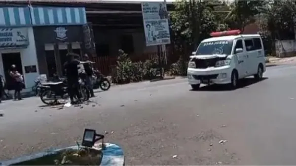 TRIBUNJATIM.COM, BONDOWOSO - Sepeda motor Honda Supra nomor polisi DK 6570 KO adu banteng dengan Ambulance, di Jalan Ahmad Yani tepatnya di pertigaan Alun-alun Adipura Nangkaan, Kecamatan Bondowoso, pada Selasa (23/9/2025).