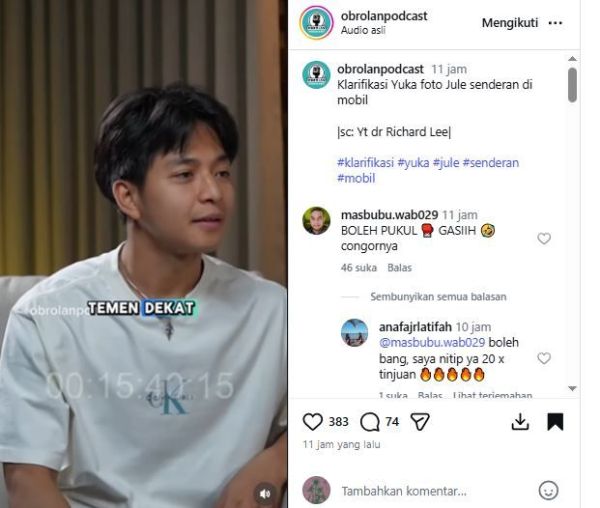 Mendengar ucapan Yuka tersebut, netizen makin geram. Pasalnya, Yuka dan Jule sama-sama dikabarkan selingkuh dari pasangan masing-masing.