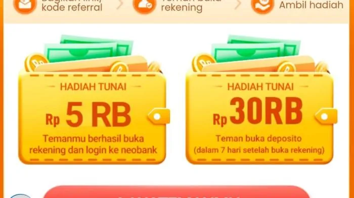 Baca juga: Cara Buka Rekening SeaBank, Daftar Akun Langsung Masukan Kode Referral BZ7HEV Klaim Bonus Uang Tunai