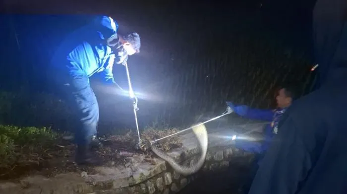 “Paling banyak ditemukan pas musim hujan. Karena tempat persembunyian tergenang air makanya ular piton pindah,” kata Yonny.