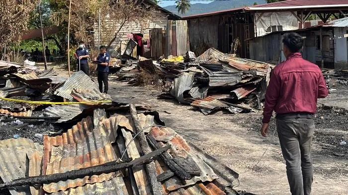 Kondisi cuaca dan material bangunan yang mudah terbakar diduga menjadi pemicu api dengan cepat membesar.