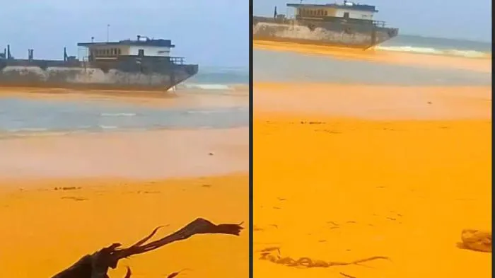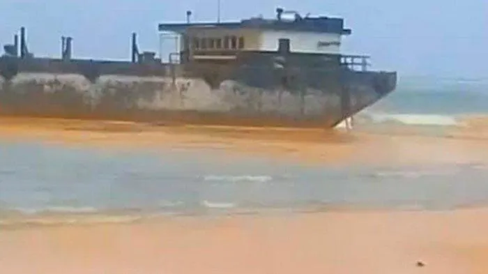 Kapal kemudian terdampar dan kandas di Beting tidak jauh dari pantai.