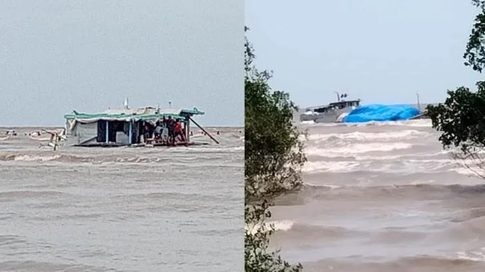 "Karena menghadapi cuaca buruk dan gelombang kapten kapal mengambil langkah penyelamatan dengan mengarahkan langsung kapal tepi pesisir pantai tepatnya sekitaran desa Tenggayun kecamatan Bandar Laksamana," terangnya.