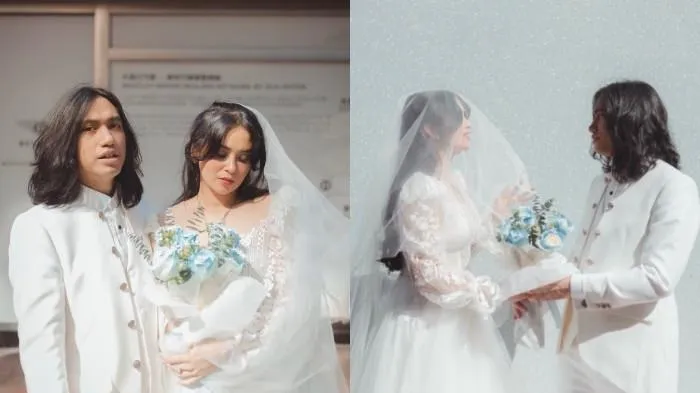 Dalam unggahan yang memuat empat foto tersebut, keduanya terlihat berpose penuh kehangatan. Meski konsepnya sederhana, kebahagiaan sebagai pasangan pengantin begitu terpancar dari raut wajah mereka.