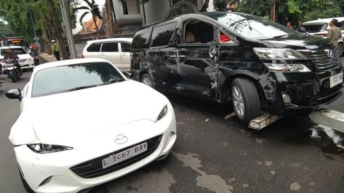 Karena jarak yang sudah dekat, tabrakan tidak dapat dihindari dan benturan terjadi di bagian depan kedua kendaraan.