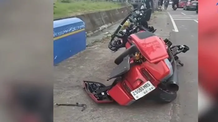 Kecelakaan ini melibatkan sepeda motor Harley Davidson dan sepeda motor Jupiter MX.