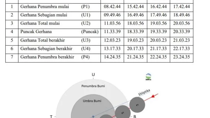 1. Awal gerhana penumbra: pukul 15.42.44 WIB, 16.42.44 WITA, dan 17.42.44 WIT
