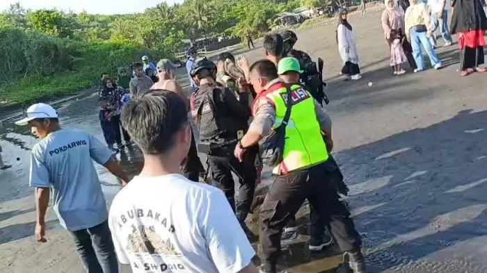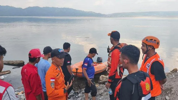 Petugas langsung menggotong korban ke tepi Danau Singkarak, dan masyarakat juga ramai menyaksikan.