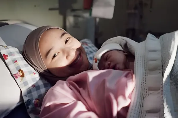 Momen haru saat persalinan juga dibagikan dalam potret hitam putih yang memperlihatkan Abel Cantika memeluk bayinya sesaat setelah lahir. Di sampingnya, Ray Rafi terlihat setia mendampingi di ruang perawatan.