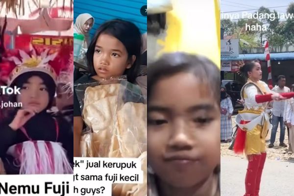 Fuji juga mengunggah anak penjual kerupuk yang mirip dengannya.