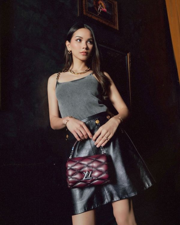 Tak lupa, Alyssa juga menambahkan tas merah marun yang melengkapi outfitnya kala itu.