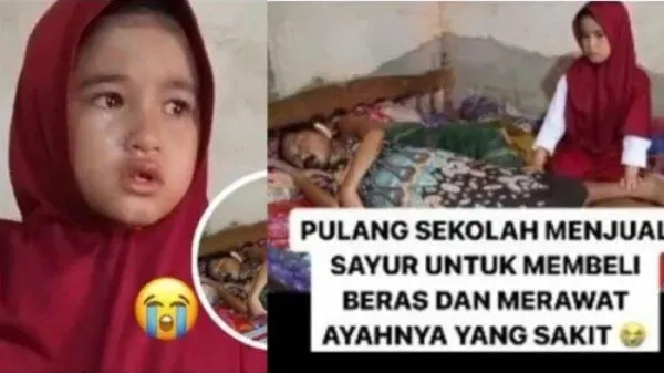 Alika bocah yang masih kecil itu terpaksa berjualan sayur untuk memenuhi kebutuhan hidup dan bantu ayah sakit kanker.