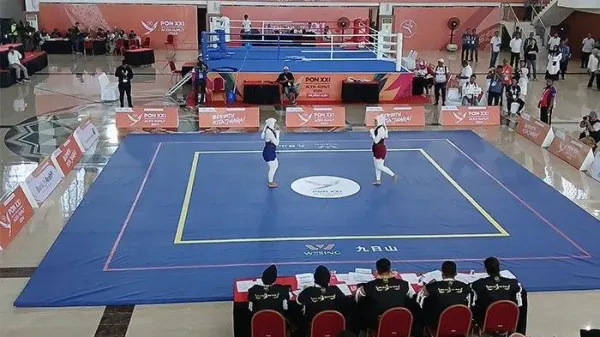 SERAMBINEWS.COM, BANDA ACEH - Sebanyak delapan kontingen bertanding pada hari pertama pembukaan cabang olahraga muaythai perhelatan PON XXI Aceh-Sumut di Balai Meuseraya Aceh, Kamis (5/9/2024).