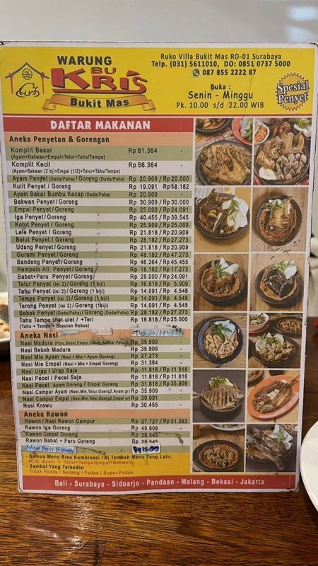 Untuk kamu yang penasaran dengan harga menunya, Warung Bu Kris ini dimulai dari 5000an hingga 80ribuan.
