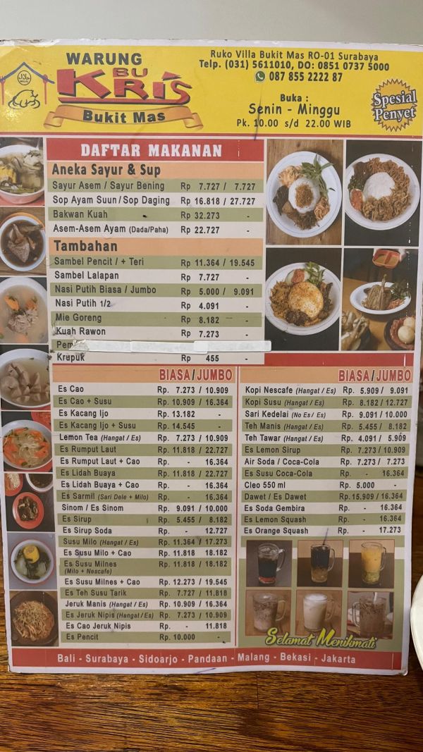 Berikut beberapa menu yang ada di Warung Bu Kris.