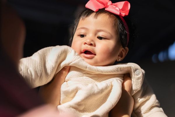 Di foto itu, Baby Lily memakai sweater panjang warna putih.