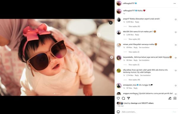 Bersamaan dengan hal itu, Raffi menuliskan sebuah nama yang diduga nama asli Baby Lily.