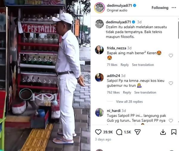 Teguran Dedi Mulyadi untuk pedagang yang dirikan lapak di trotoar itu diketahui dari unggahan di akun Instagramnya @dedimulyadi71 pada (10/02/2026). Di unggahan itu, Dedi Mulyadi tampak mendatangi sebuah toko di Jawa Barat.