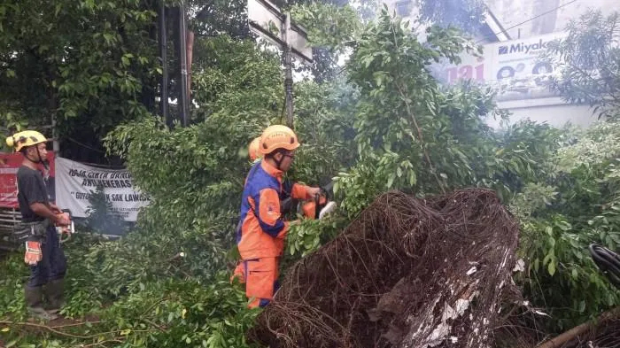 Di kawasan tersebut, pohon setinggi 5 meter dilaporkan menimpa kabel telepon, kabel Penerangan Jalan Umum (PJU), serta menghalangi akses pejalan kaki.